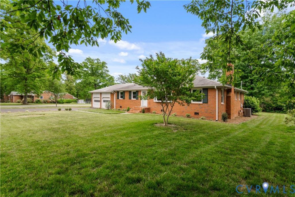 Fantastic offering in the heart of North Chesterfield! Ideally situated directly between Rt 60 Midlothian Turnpike and Rt 360 Hull Street corridor. Five minutes from Wegmans and the new Whole Foods anchored Midlothian Depot! Minutes from dining, shopping, recreation, schools. Close to 288; multiple health care facilities; multiple different parks, playgrounds. 15 minutes to Pocahontas State Park. One-level living on a huge corner lot, No HOA! Well maintained classic brick ranch with attached two car garage and freshly manicured landscaping. New asphalt driveway (2025); new dishwasher (2025) windows (2024); seamless gutters with gutter guards. Large bright living room with big bay window and hardwood floors leads to updated kitchen with stainless appliances and big island with bar seating. Cozy family room with exposed beams, built-in bookcase, and wood burning fireplace. Three bedrooms all with hardwood floors and nice closet space. Large laundry and utility room leads out to rear covered concrete patio overlooking spacious rear yard and landscaping. Rear attached storage and utility shed. Gorgeous mature trees and lush lawn. Endless possibilities with huge, level, open rear yard. Tour this Chesterfield County home today!