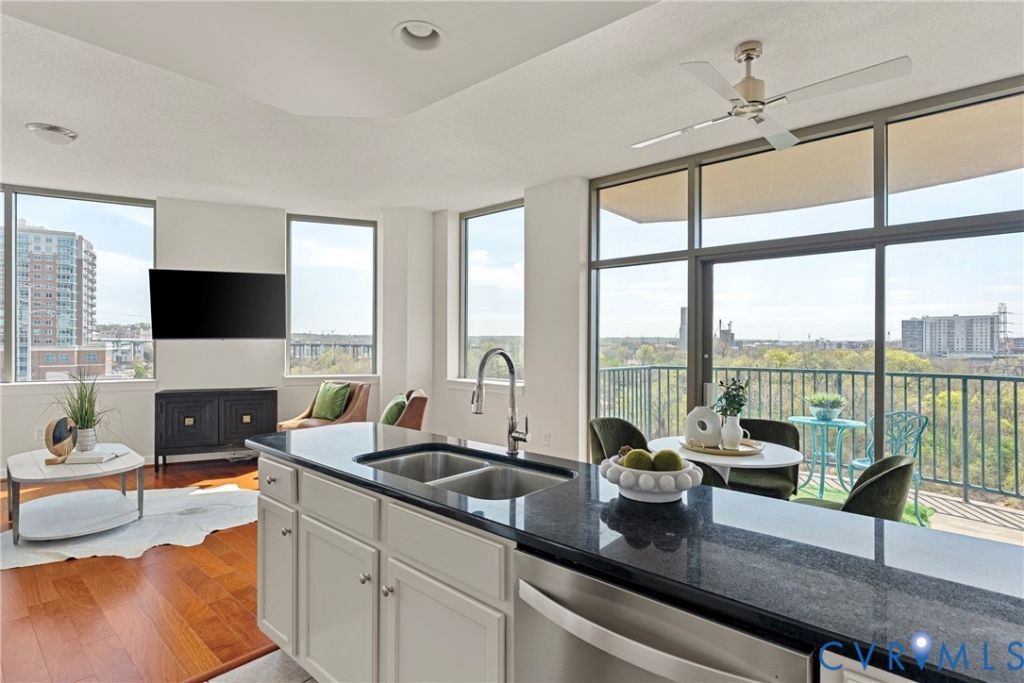 Situated on the fifth floor of Riverside on the James, this beautifully updated corner residence offers a rare combination of expansive natural light and sweeping views of the James River. With windows on multiple sides, the home is constantly filled with sunlight, creating a bright, airy atmosphere that evolves throughout the day. Inside, the interiors are clean-lined and thoughtfully updated, striking a balance between modern sophistication and everyday comfort. Rich hardwood floors flow throughout the open-concept design enhancing both livability & flow. The primary suite includes a spacious walk-in closet and a well-appointed en-suite bath, with a double vanity, glass shower, and soaking tub. An additional bedroom & full bath offer flexibility, ideal for guests or home office. As a corner unit with exceptional light & views in one of Richmond's most sought-after waterfront buildings, this residence also presents a compelling opportunity-offering a level of setting and perspective that is increasingly hard to find at this price point. What truly sets this home apart is the lifestyle it affords. Just beyond your door, some of Richmond's most iconic outdoor & cultural destinations await. Enjoy access to the Virginia Capital Trail & Canal Walk. Dine at local favorites like Casa del Barco and Smokestack Pizza & Bar. Brown's Island, the T. Tyler Potterfield Memorial Bridge, and Belle Isle are all moments away, seamlessly connecting you to the city's vibrant outdoor scene. Positioned within easy reach of the Financial District, Shockoe Bottom & VCU Medical Center, the location offers exceptional convenience without compromising on atmosphere. For those who value natural light, thoughtful updates, and a seamless connection to the outdoors-with the added benefit of long-term appeal-this home delivers. A private fitness center, in-unit washer and dryer, and two assigned covered parking spaces add layers of everyday ease. More than a residence, this is a lifestyle-bright, connected, and distinctly Richmond.