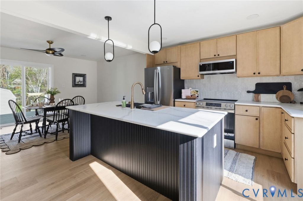 Step into perfection with this beautifully transformed home, where every detail has been thoughtfully upgraded to blend modern elegance with everyday comfort. The kitchen serves as the heart of the home, showcasing sleek quartz countertops, oak slim shaker cabinetry, and brand-new appliances, creating a true chef's dream. Every bathroom has been fully renovated with designer tile, modern fixtures, and a fresh, luxurious feel. Recessed lighting extends throughout, while theater-style lighting in the living and dining areas adds both ambiance and a touch of sophistication, perfect for entertaining or cozy nights in. Step outside to enjoy a brand-new deck surrounded by professionally designed landscaping, offering an ideal setting for relaxing or hosting guests. Fresh interior and exterior paint enhance the home's bright, inviting atmosphere from every angle. Practical upgrades, including replaced insulation and a vapor barrier in the crawlspace, provide lasting comfort and peace of mind. With its extensive upgrades, cohesive design, and move-in ready condition, this home offers an exceptional opportunity in a sought-after location.