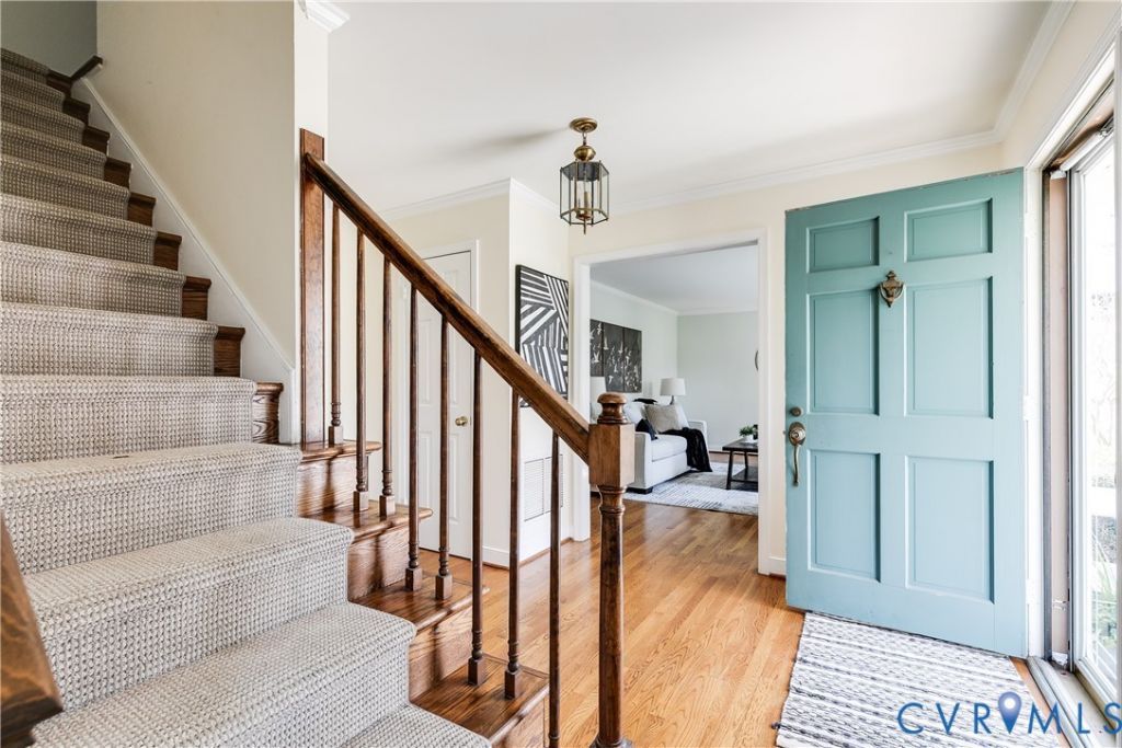 Set on over a half-acre in Surreywood, 1616 Lancashire Dr offers the space, comfort, and setting you've been looking for! The years of thoughtful ownership and care are evident from the moment you step inside where you'll find a welcoming foyer with crown molding and hardwood floors that continue throughout the home. To the right, the spacious living room offers great natural light, while the dining room to the left features both crown and chair rail molding and a stylish chandelier. The kitchen is both on-trend and functional, offering updated cabinetry with dovetail drawers, pull-out shelving, two lazy Susans, Quartz countertops, tile backsplash, stainless steel appliances, and a cozy breakfast nook. Sliding glass doors lead to a stunning screened-in porch with an adjacent open-air deck, creating an incredible indoor-outdoor flow. Just beyond, the expansive bluestone patio offers an additional space for entertaining! Back inside and just off the kitchen, the large family room boasts hardwood floors, crown molding, and a classic brick fireplace. A half bath and dedicated laundry room complete the main level. Upstairs, you'll find four spacious bedrooms, including a primary suite with two closets-one being a walk-in-and a well-appointed ensuite bath with a walk-in shower, tile surround, and glass door. The additional bedrooms all feature hardwood floors, ample closet space, and share a full hall bath with a large vanity and an oversized tub/shower with tile surround. A walk-up attic provides excellent storage with custom-built organization. The full basement, accessible from the kitchen, includes the rear-loading garage, tall ceilings, and an amazing amount of storage. Outside, the setting truly shines-from the screened-in porch to the impressive patio, a huge yard, mature trees, and well-maintained landscaping, it's a complete outdoor living setup that's hard to find. There's a lot to love about 1616 Lancashire Dr-the perfect place to call home!