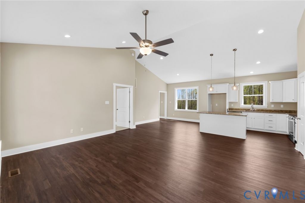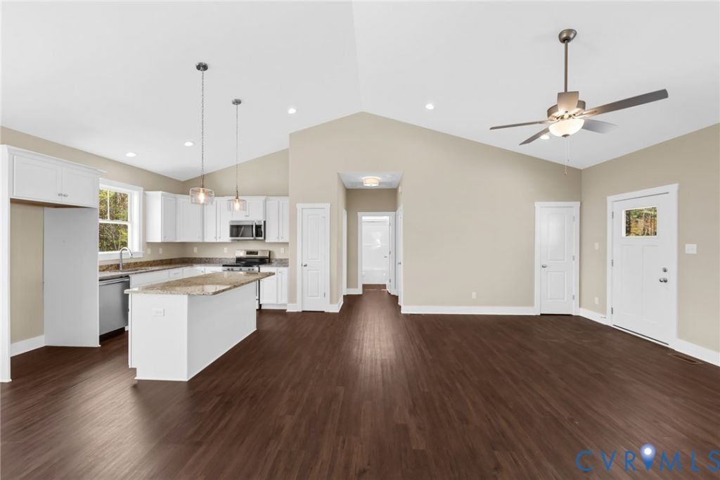 Beautiful Rock River Home on 1.5 Acres in Farmville! This Laurel Creek plan offers 3 spacious BEDROOMS and 2 BATHS with modern upgrades throughout. The open floor plan features a bright kitchen with GRANITE countertops, an ISLAND, MERILATT cabinets, pantry, and backsplash, seamlessly flowing into the living area with CATHEDRAL ceilings, recessed lighting, and oversized windows. Enjoy LVP flooring, a conditioned crawlspace, landscaping, and gutters. The Primary Suite includes upgraded LVP flooring, adding style and durability. Experience peaceful country living with beautiful views, while still being just minutes from Farmville's restaurants like Fish & Pig and the charming shops at Green Front.