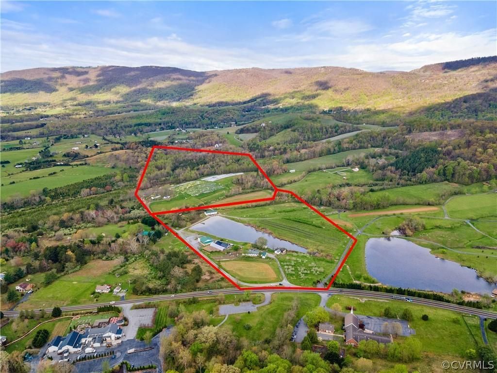 The 64.08 acre property currently serves as the home to Critzer Family Farm, a working pick your own fruit farm. With prominent frontage on RT 151 along Virginia's Brewery Trail, the property sits directly across from the well known Blue Mountain Brewery and just a quick drive to both RT 250 and I-64. Additionally the property sits along the route to other popular weekend destinations such as Wintergreen Resort and Devil's Backbone Basecamp. Among the orchards, fields and wooded areas on the property sits five separate dwellings along with a 4,172 SF produce sales building and two large green houses. The primary residence consists of a 2,716 SF dwelling with a two car garage. In addition there are two guest houses and two farm hand residences one of which is a tiny home. A 1.5 acre pond sits at the entrance of the property and provides for recreational fishing and wildlife viewing from the existing dock and viewing platform. Other property improvements consist of operational fruit orchards and existing irrigation infrastructure. The premium location makes 9833 Critzer Shop Road ideal for an owner operator or investor looking to capitalize on the large volume of tourism traffic through the area. The Critzer Family Farm stands ready to be Nelson County's next agritourism sensation!